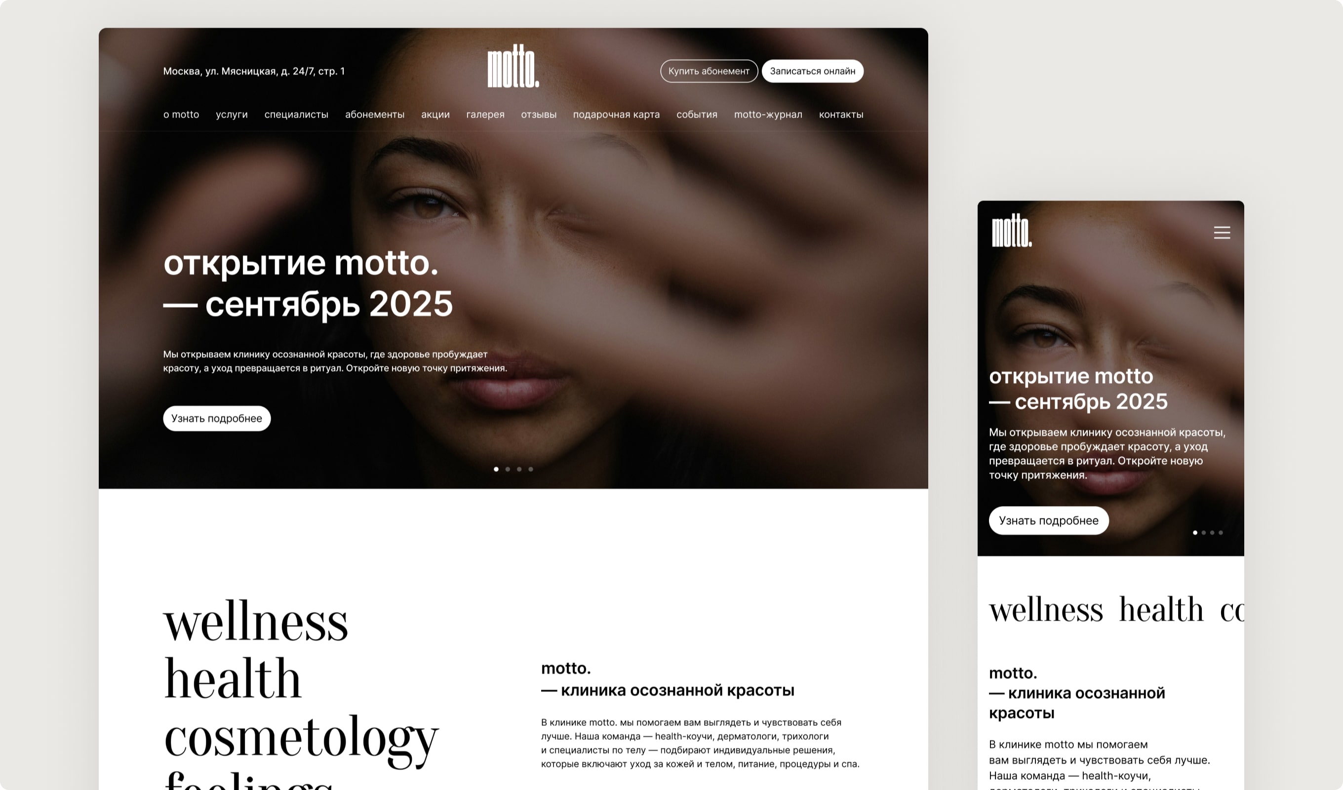 Разработали дизайн сайта для клиники осознанной красоты Motto.