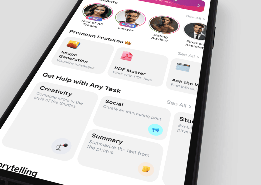 Разработали дизайн мобильного приложения AI чат и ассистент для iOS и Android.