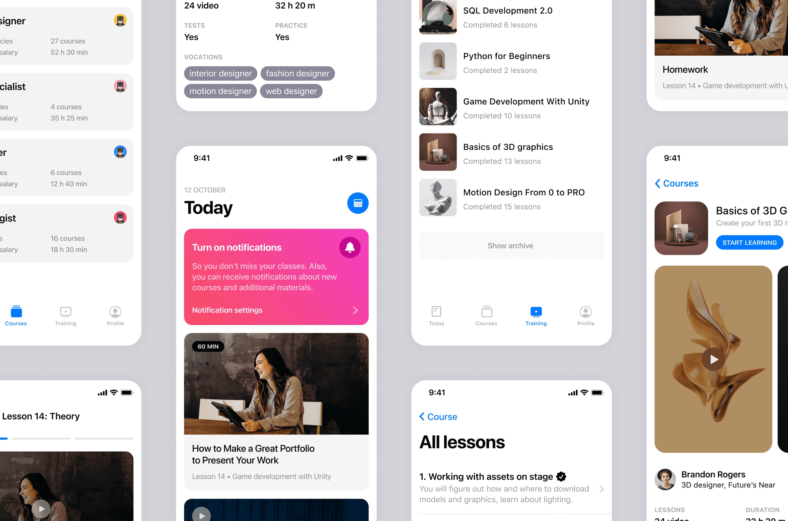 Разработали дизайн для внутреннего проекта – мобильное приложения для школы UI/UX дизайна.