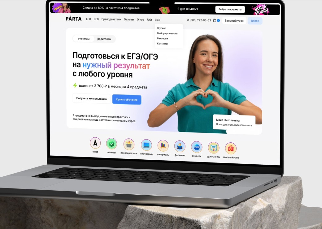 Разработали логотип и сайт для одной из самых крупных онлайн школ по подготовке к ЕГЭ/ОГЭ с десятками тысяч клиентов.