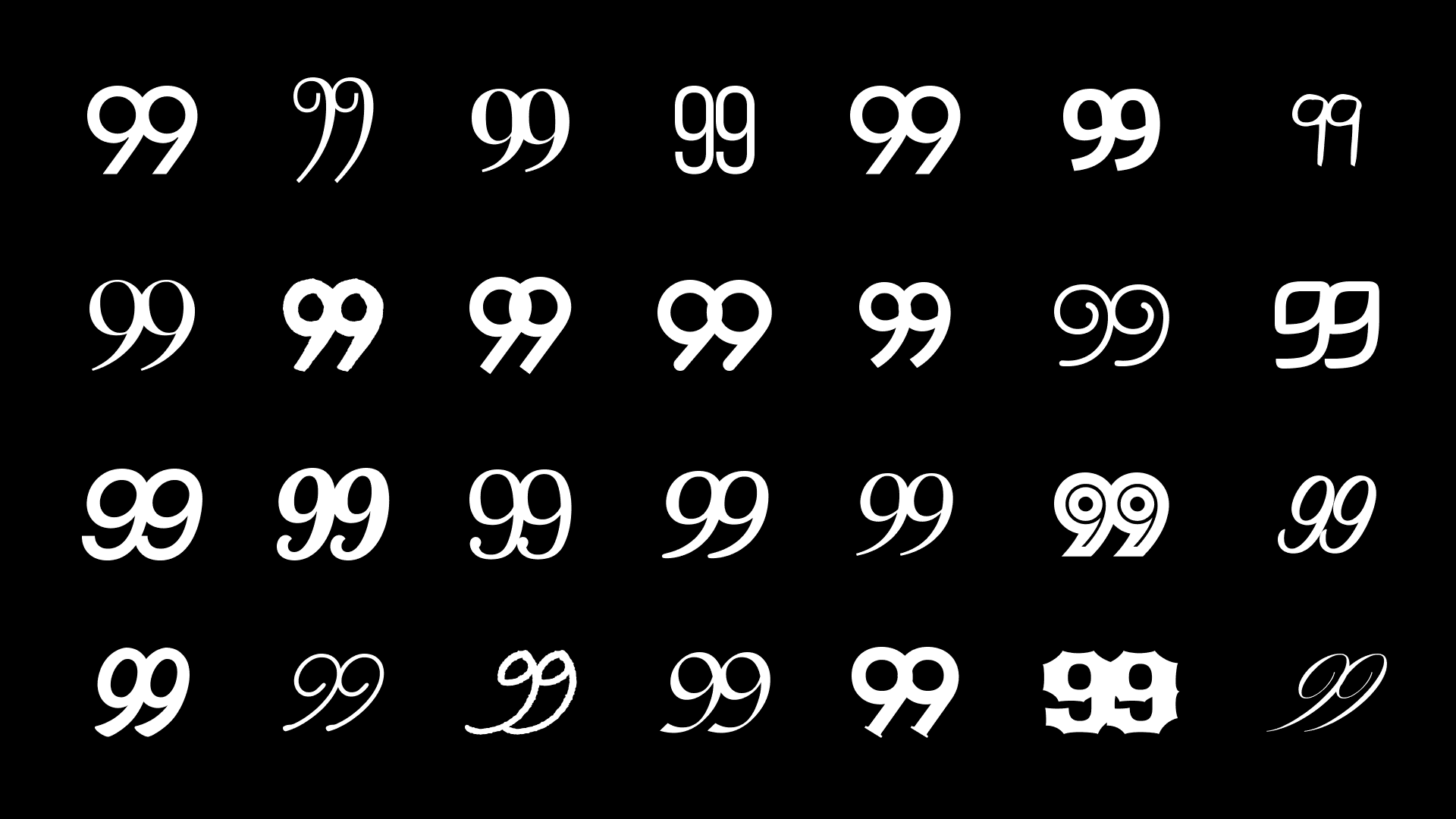 Последнее, мы решили изменить букву «О», чтобы добавить баланса в логотип в правой стороне, так как все внимание уходит на левую сторону из-за «99» и «б». Мы использовали идеальный круг. Простое и гениальное решение. Теперь «о» не просто буква, но и визуально больше любого символа в названии и добавляет веса правой части лого. Теперь у нас в логотипе есть числа, буквы и идеальная геометрическая фигура, которая не перетягивает на себя внимание.