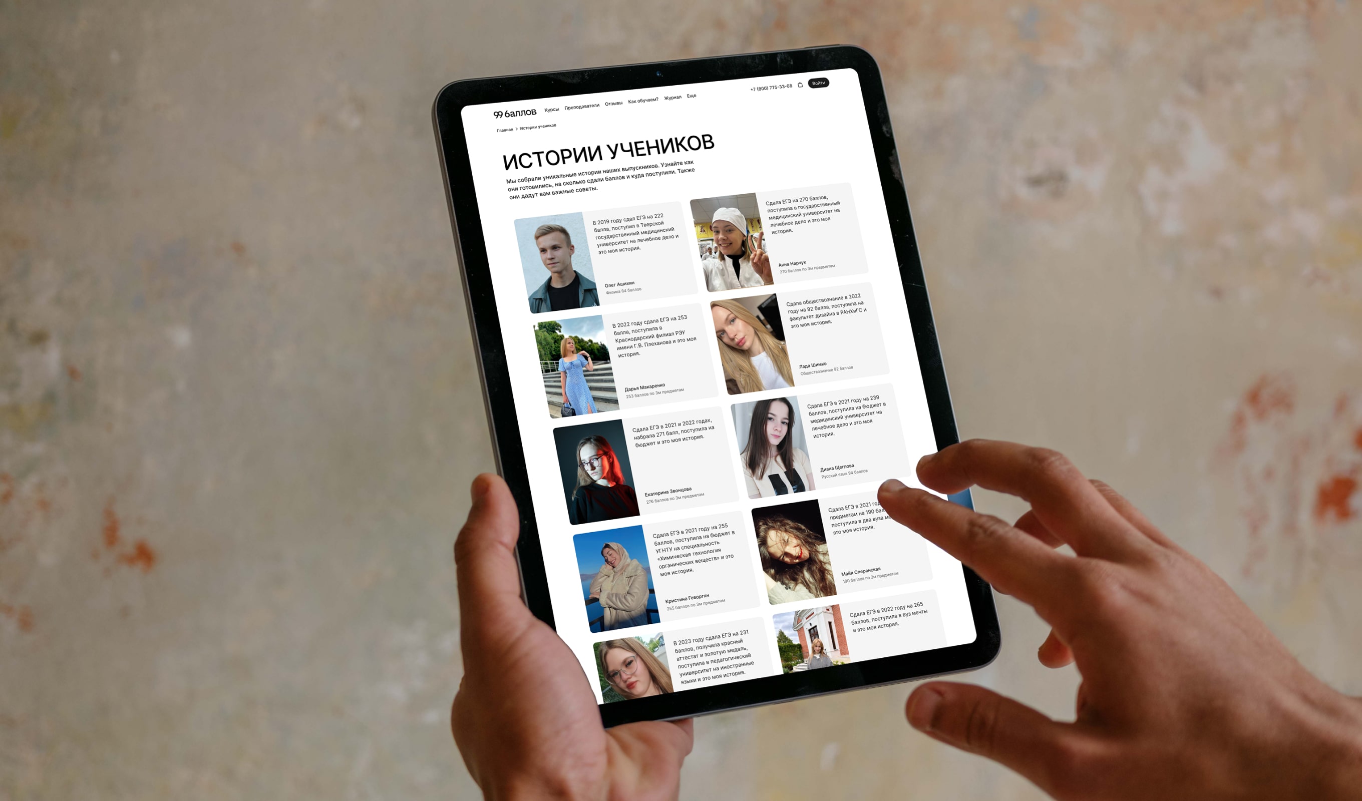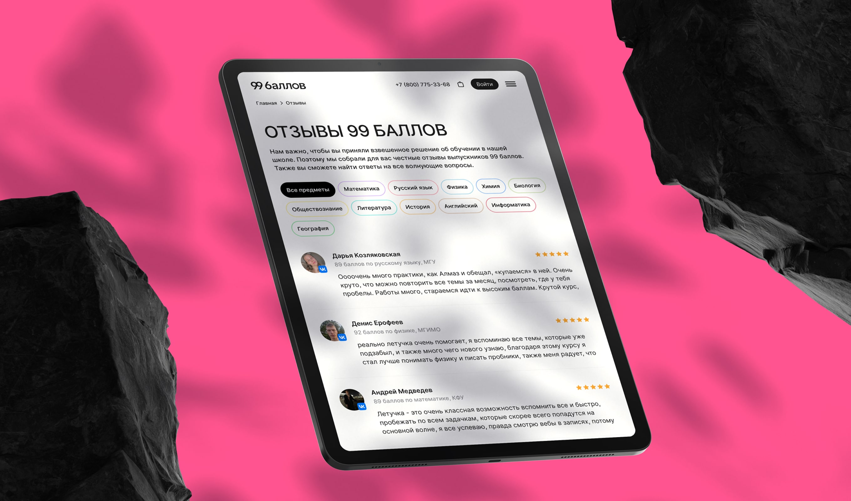 Мы разработали монументальную платформу для школы 99 баллов. Мы считаем, что создали один из лучших сайтов на рынке онлайн образования. Мы счастливы, что нам удалось реализовать все наши смелые идеи.
