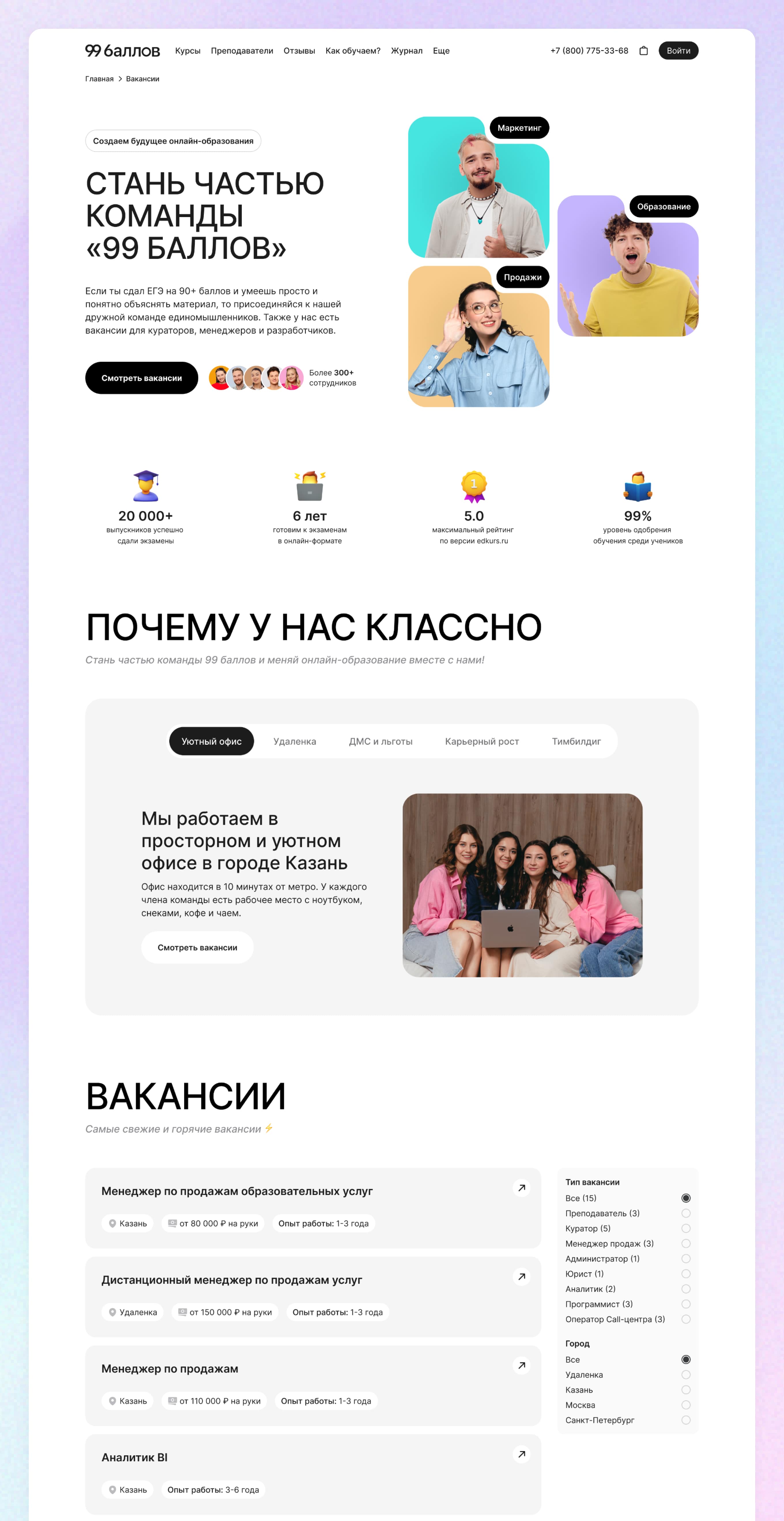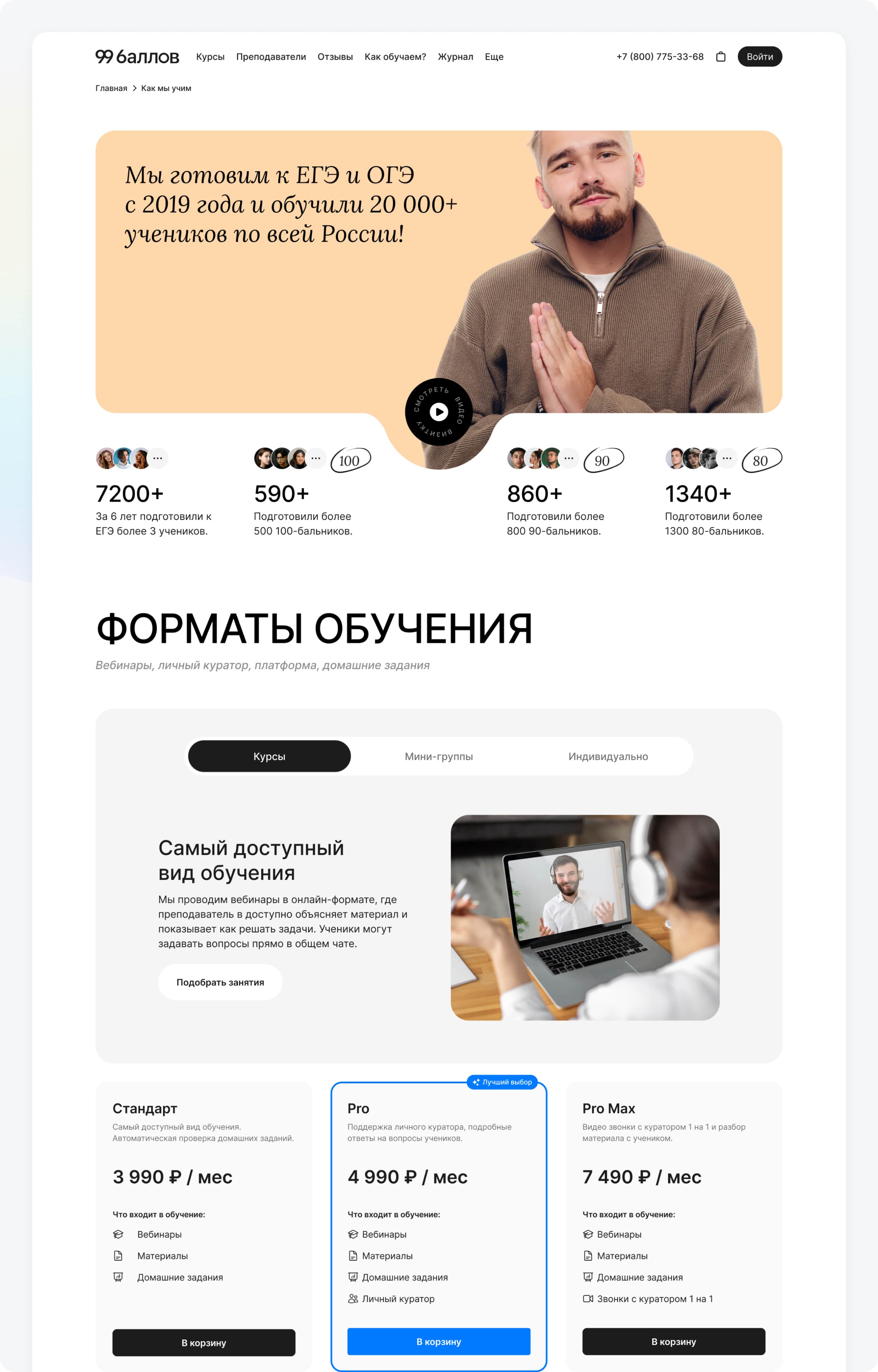 После работ по ребрендингу онлайн-школы «99 баллов», мы взялись за полномасштабный редизайн сайта.