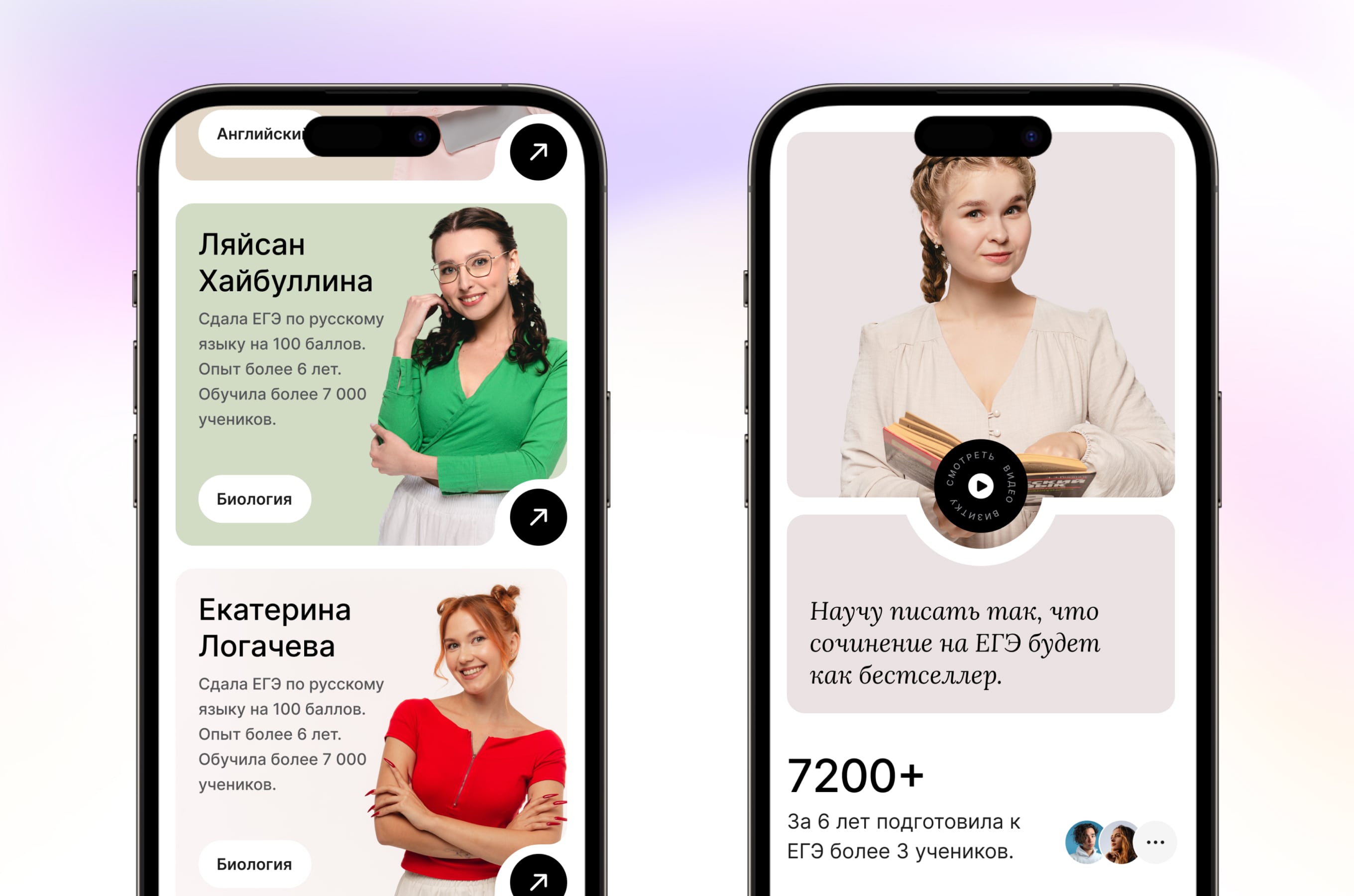 Истории учеников – наша авторская задумка в дизайне. Никто на рынке онлайн-школ так не делает. Мы считаем крайне важно использовать сторитейлинг, чтобы ученик экстраполировал опыт выпускника школы с собой и получить уверенность в собственных силах. Ведь, если получилось у них, значит получится и у меня.