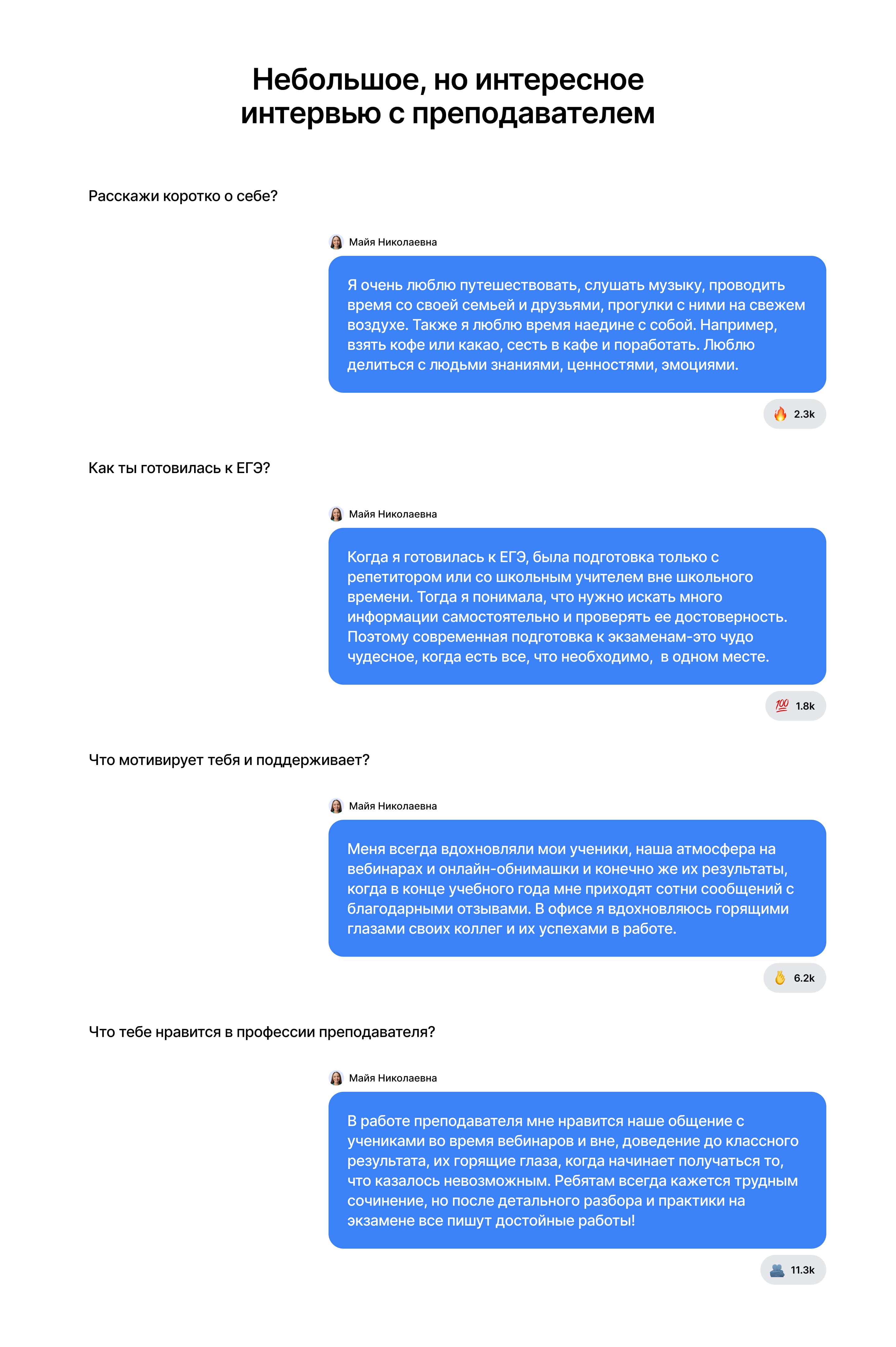 На странице преподавателя показываем важную информацию об учителе и рассказываем его историю.